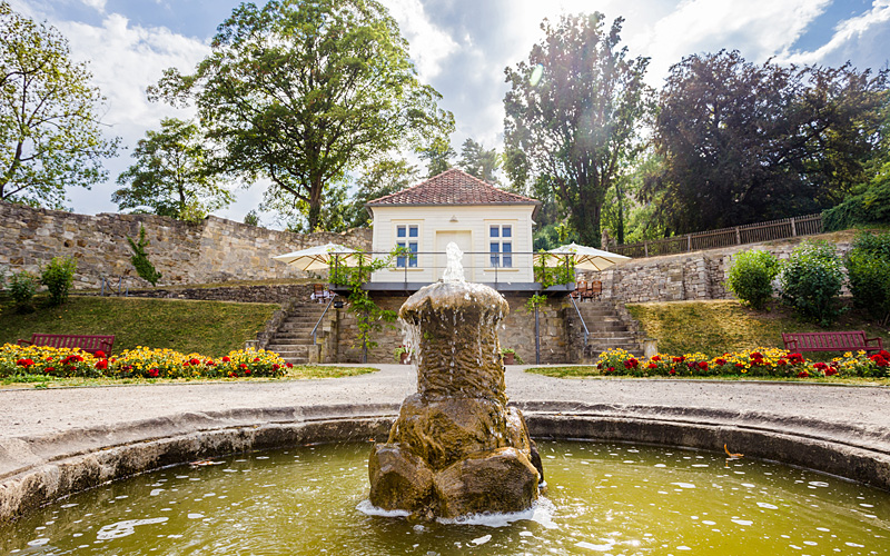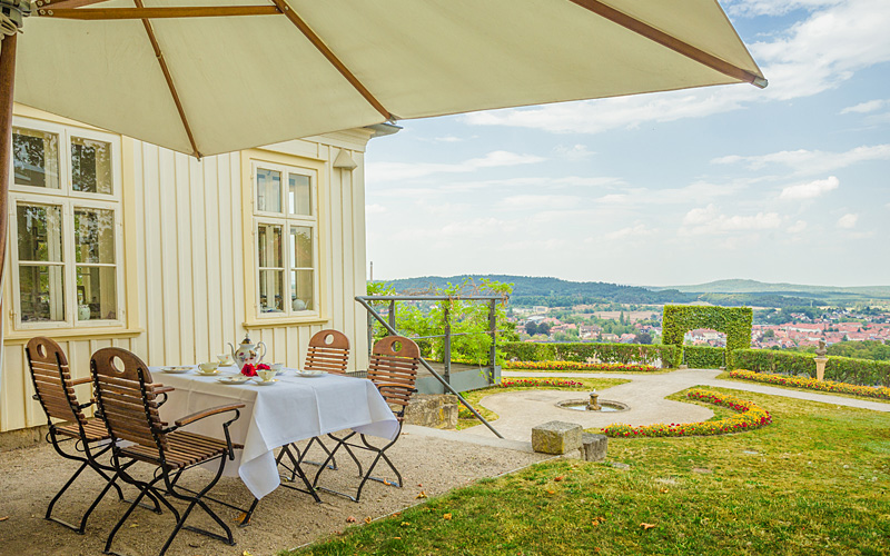 Zweite Parkmöglichkeit am großen Schloss, von hieraus kommen Sie den Berg hinunter zur Oberen Mühle / Teehaus.